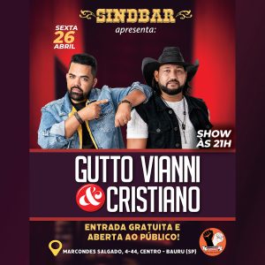 SindBar deste mês terá show com “Gutto Vianni e Cristiano”