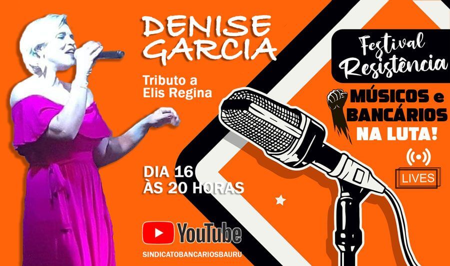 Neste domingo, 16, o “Festival Resistência – Músicos e Bancários na Luta”, do Sindicato dos Bancários de Bauru e Região, transmite ao vivo a apresentação de Denise Garcia.