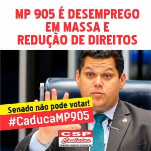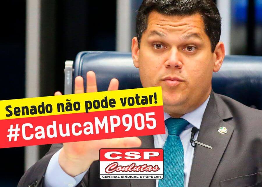 É preciso pressionar para que o presidente do Senado, Davi Alcolumbre (DEM), não coloque esse projeto em votação. Estão mentindo que a MP 905 é para gerar empregos. Ela não tem nada a ver com o combate aos efeitos da pandemia. É uma bolsa-patrão que reduz direitos e permitirá que as empresas façam demissões em massa, o que vai agravar ainda mais o desemprego no País.