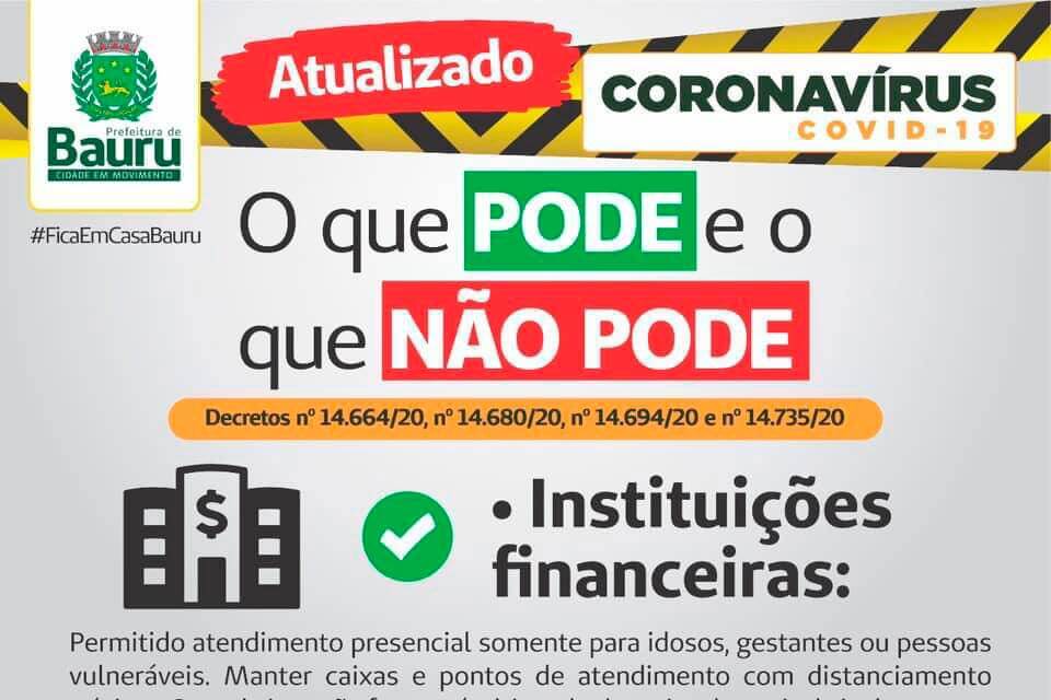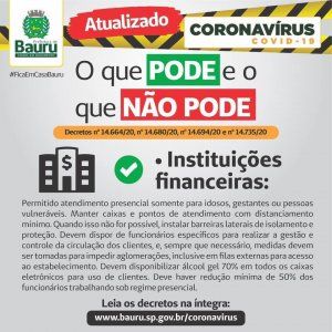 Veja na imagem abaixo as imposições para o funcionamento dos estabelecimentos bancários em Bauru.