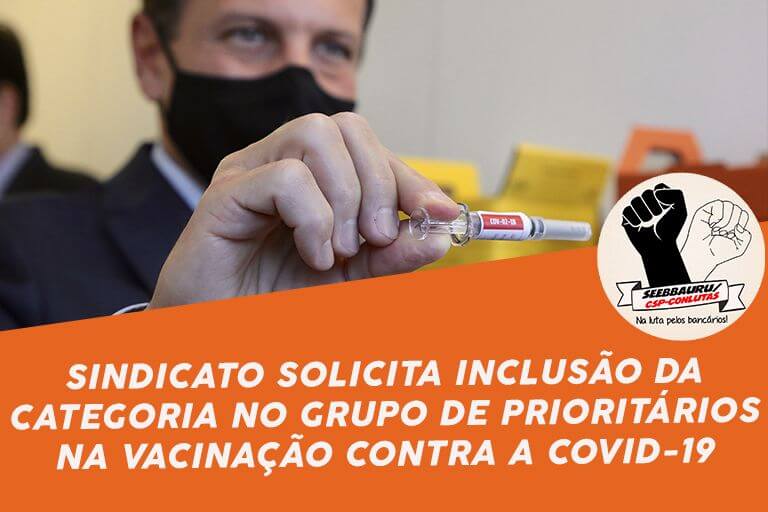 O Sindicato dos Bancários de Bauru e Região enviou, nesta sexta-feira (17), uma carta ao governador do Estado de São Paulo, João Doria, solicitando a inclusão da categoria bancária no grupo de prioritários a ser vacinado na fase 1 do Plano Estadual de Imunização contra o coronavírus.