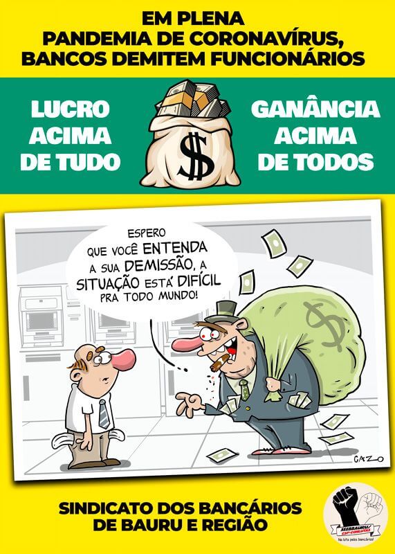 Para o Sindicato, quando os banqueiros se comprometeram verbalmente a não realizar demissões durante a pandemia, eles não imaginavam que ela fosse se estender por tanto tempo e, agora, para manterem suas lucratividades, apelam para as demissões. É importante lembrar que em 2019, o lucro somado dos 5 maiores bancos do País subiu mais de 30%, totalizando mais de R$108 bilhões. Um afronte!