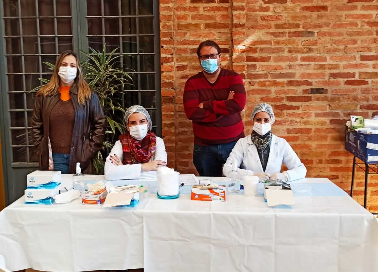 Na foto, Priscila e Tonon, diretores do Sindicato, Joyce, médica responsável pela testagem, e Kethlyn, bióloga assistente da testagem.