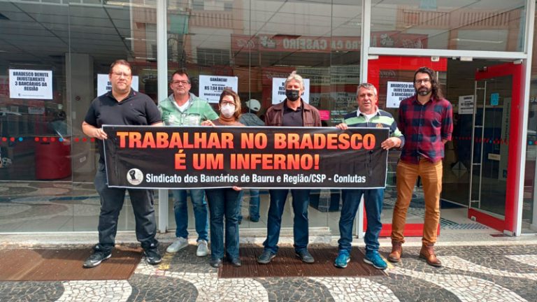 Sindicato realiza protesto na regional do Bradesco em Marília, após 5 demissões sem justa causa