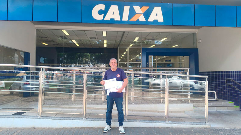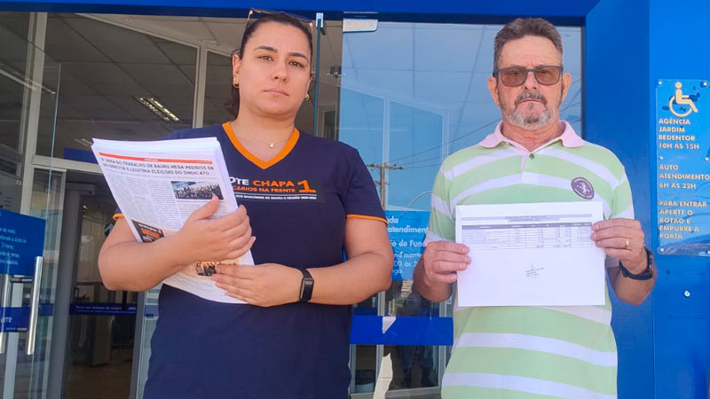 Laura e Pedro, diretores do Sindicato, devolvem a taxa na CEF Redentor