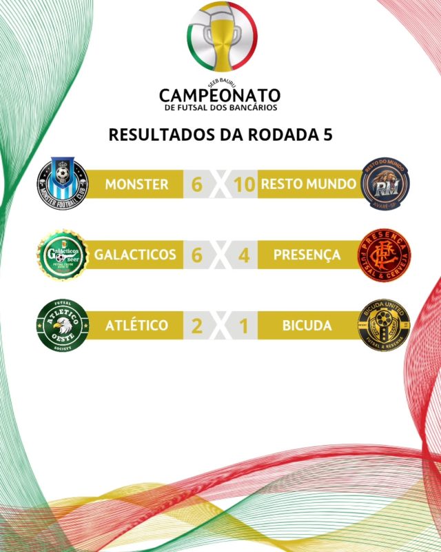Confira abaixo os resultados da 5ª rodada, a classificação atualizada e a tabela de artilharia. A cobertura fotográfica dos jogos realizados no dia 1º de novembro pode ser acessada clicando aqui!