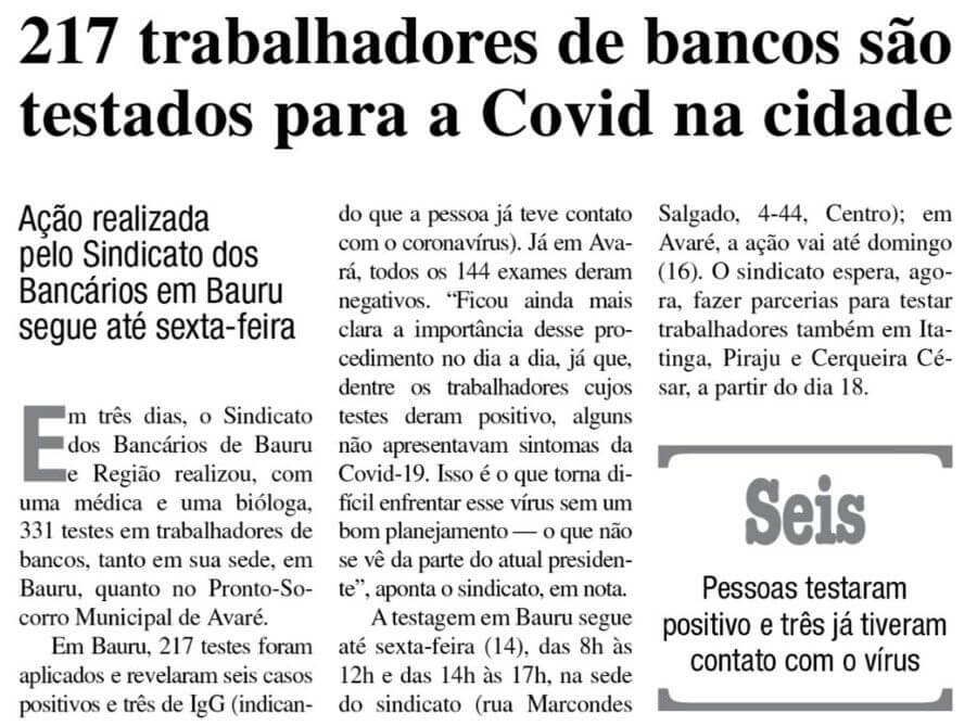 A ação do Sindicato foi divulgada pelo Jornal da Cidade, de Bauru, na edição de ontem, 13. Veja abaixo: