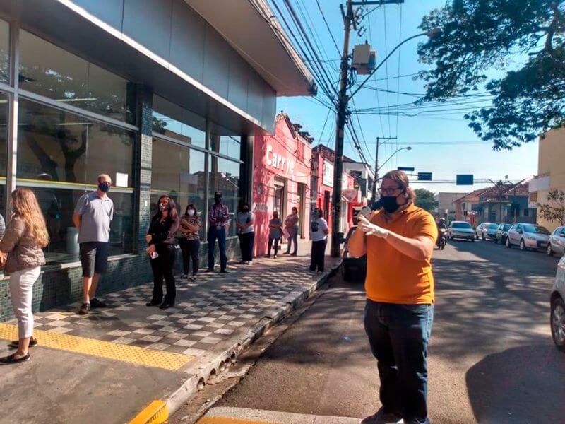 Em março, o Sindicato fiscalizou as agências bancárias de Bauru para averiguar se o decreto municipal estava sendo cumprido. De acordo com o decreto, os bancos estavam autorizados a realizar somente serviços de compensação bancária, de redes de cartões de crédito e débito, serviços correlatos aos caixas bancários eletrônicos e outros serviços não presenciais. O atendimento presencial só estava autorizado para idosos, gestantes e pessoas vulneráveis. Além disso, os bancos deveriam reduzir o número de funcionários trabalhando sob regime presencial, em pelo menos 50%.