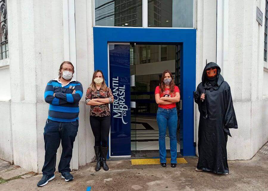 Em abril, o Sindicato flagrou o Mercantil do Brasil descumprindo decreto municipal e realizou um protesto, com a presença da “morte”