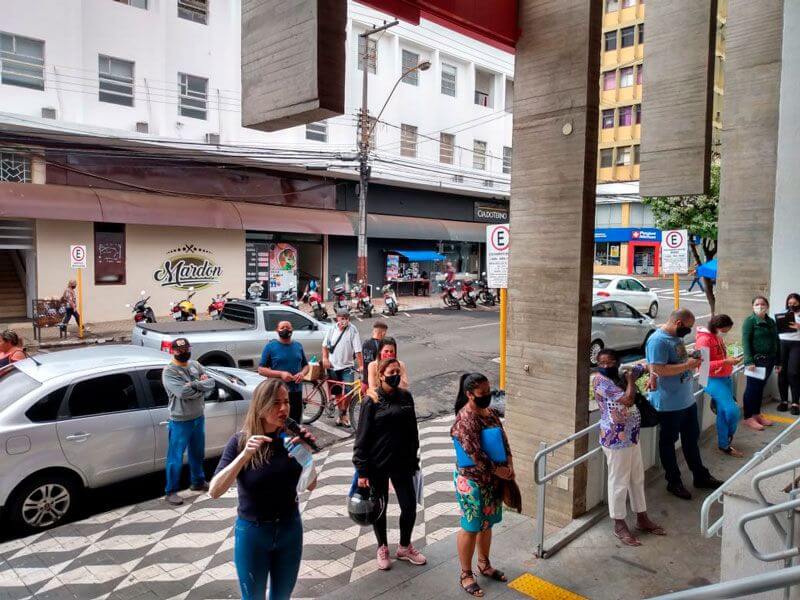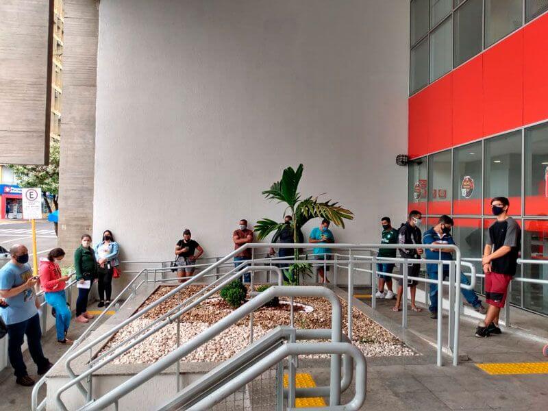 A agência, localizada no Centro da cidade, tem grande fluxo de movimento (veja abaixo foto tirada nesta quinta-feira) e já teve um caso de Covid-19 confirmado em agosto.