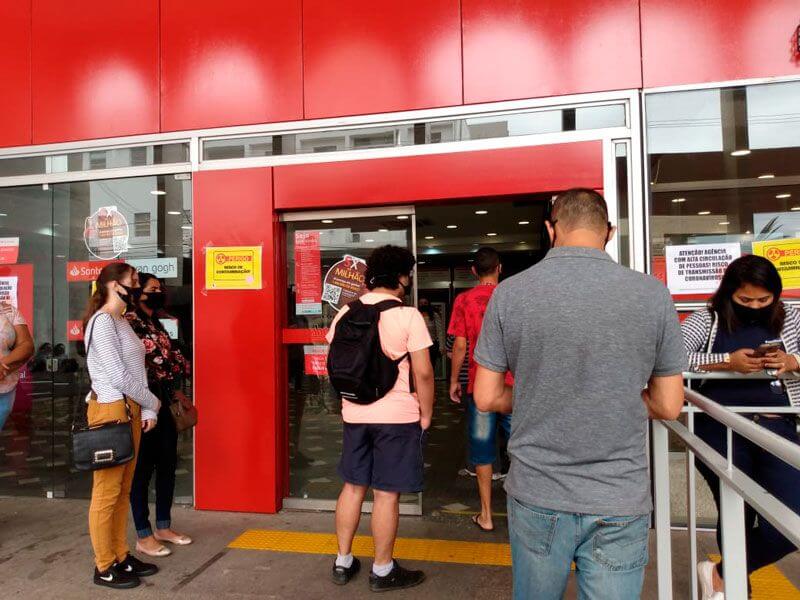 A agência, localizada no Centro da cidade, tem grande fluxo de movimento (veja abaixo foto tirada nesta quinta-feira) e já teve um caso de Covid-19 confirmado em agosto.
