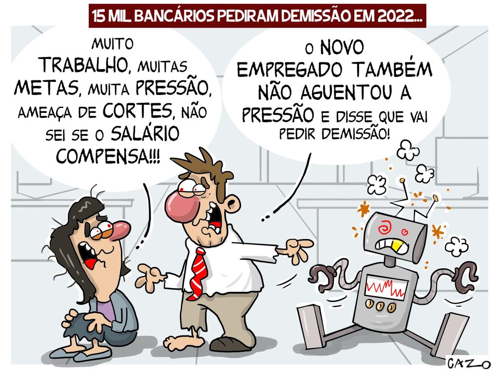 Todos os bancos públicos e privados, sem exceção, têm pressionado seus funcionários com metas abusivas, sobrecarga de trabalho e desvio de função, levando uma boa parcela deles ao adoecimento. Esgotados e no limite do cansaço mental, muitos desenvolvem diversos transtornos, como depressão, ansiedade, síndrome do pânico e síndrome de burnout – distúrbio caracterizado pelo estado de tensão emocional e estresse provocados por condições de trabalho desgastantes.