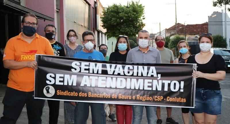 O Sindicato dos Bancários de Bauru e Região promoveu na quarta-feira (23), a carreata “Sem vacina, sem atendimento!” para protestar contra a demora na vacinação dos trabalhadores da categoria, que desde o começo da pandemia, estão gravemente expostos ao risco de contágio por coronavírus.