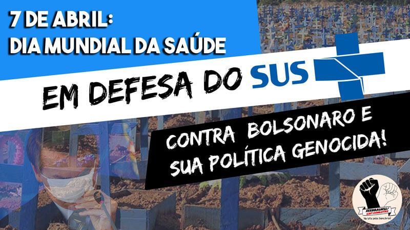 Hoje (7), é o Dia Mundial da Saúde, uma data criada pela Organização Mundial de Saúde (OMS), para conscientizar as pessoas sobre a importância da preservação da mente e do corpo. No Brasil, o dia será marcado por uma série de manifestações em defesa do Sistema Único de Saúde (SUS) e contra a negligência e irresponsabilidade do governo Bolsonaro diante da pandemia de coronavírus.