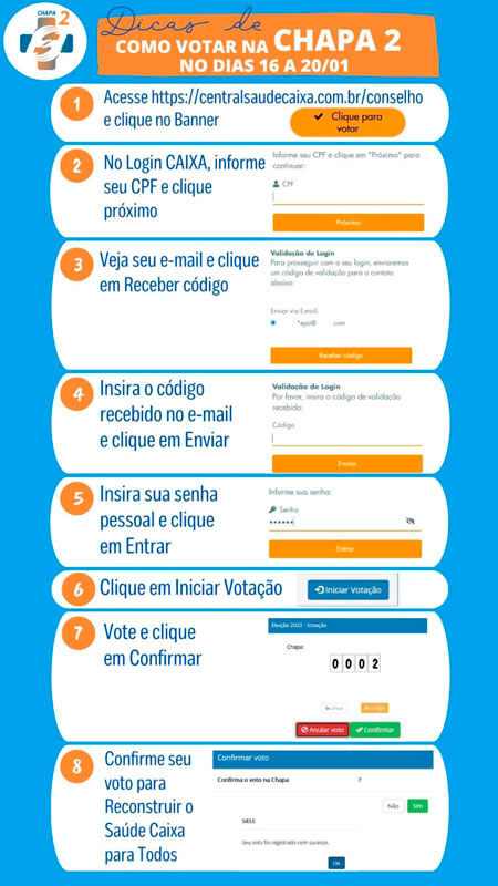 A eleição do Conselho de Usuários do Saúde Caixa se inicia hoje (16). O processo eleitoral se estende até sexta-feira, dia 20. O Sindicato dos Bancários de Bauru e Região irá apoiar a Chapa 2 “Reconstruir Saúde Caixa Para Todos”.