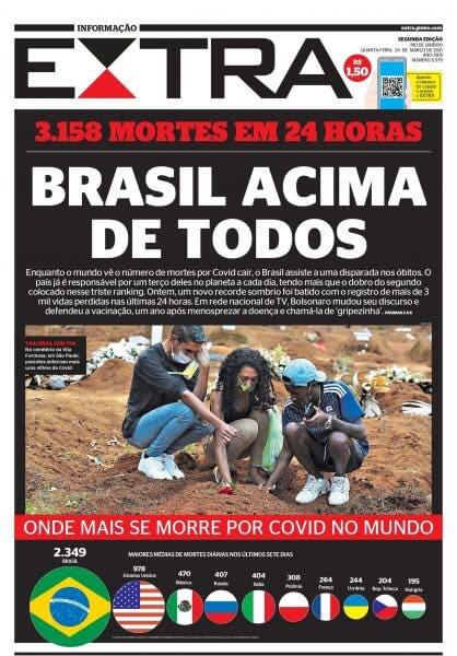 Ontem (24), o Brasil registrou a triste marca de 300 mil mortes por Covid-19. Ao todo, 2.244 pessoas perderam a vida pela Covid-19 de terça para quarta-feira, totalizando 301.087 óbitos desde o início da pandemia.