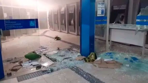 A Caixa Econômica Federal de Taquarituba foi alvo de assaltantes na madrugada desta terça-feira, 12. Além de terem explodido caixas eletrônicos e disparado tiros, eles fizeram um homem de refém durante os cerca de 40 minutos em que atuaram. O crime ocorreu por volta das 2 horas e, segundo a Polícia Civil, dois malotes foram levados e um cofre foi danificado.