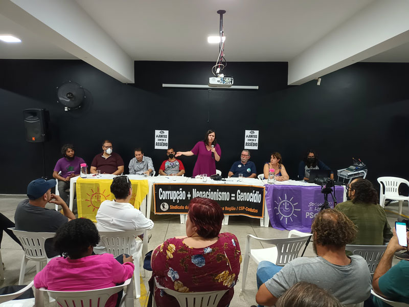 Além da deputada, estiveram presentes na mesa de discussões: Raul Marcelo, deputado estadual; Paulo Tonon e Alexandre Morales, diretores do Sindicato; Carlos e Horta, da APEOESP Bauru e Ourinhos; Priscila, do Coletivo Juntas; Glauber Braga, deputado federal; e Igor, do PSOL Bauru.